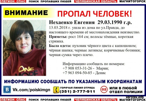 Магнитогорск. 27-летняя жительница Магнитки ушла из дома 13 марта, до сих пор о ее местонахождении неизвестно. verstov.info »