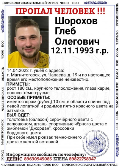 Магнитогорск. Информация о пропавшем появилась в группе волонтеров «Легион-СПАС». verstov.info »
