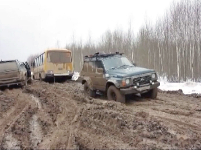 В Челябинской области пассажирам пришлось толкать маршрутку по бездорожью
