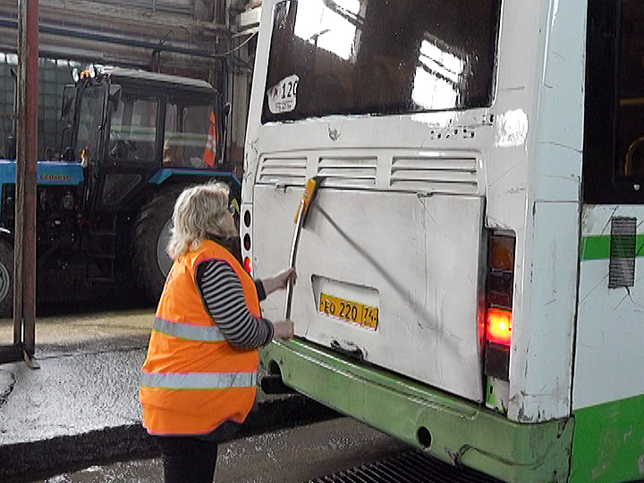 В масках и защитных костюмах они после каждого рейса обрабатывают автобусы с хлоркой. 1obl.ru »