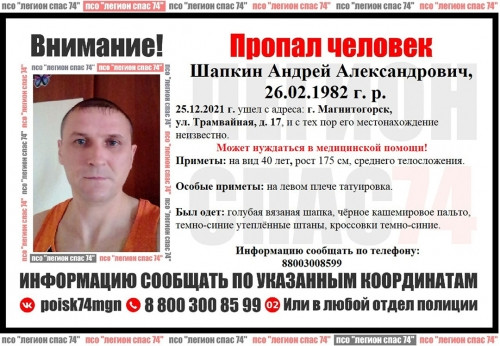 Магнитогорск. Ориентировку на пропавшего распространили в сообществе поисково-спасательного отряда «Легион Спас74». verstov.info »