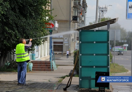 Магнитогорск. Последней сотрудники дорожно-специализированного учреждения привели в порядок остановку на улице Гагарина. verstov.info »