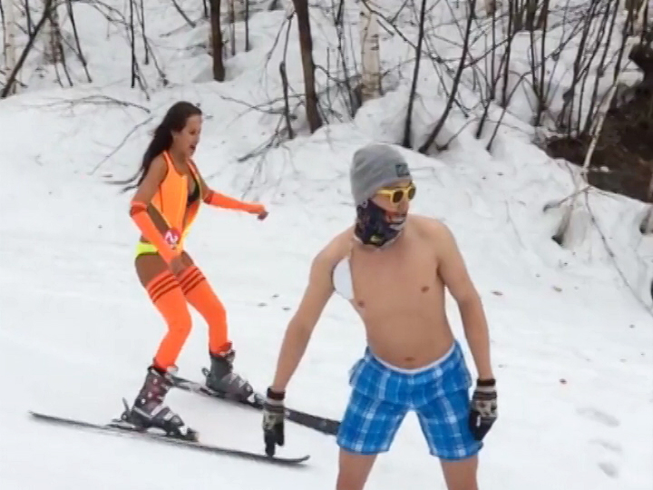 Девушки в бикини покоряют снежные склоны, словно морские волны. cheltv.ru »